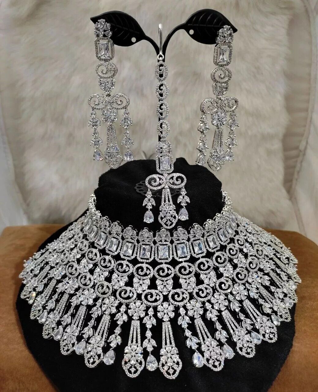 This stunning jewelry set is perfect for any special occasion. The set includes a beautiful necklace and earrings, both plated with 925 silver and featuring sparkling cubic zirconia stones. The pear-shaped necklace is adjustable, ensuring a comfortable fit for all neck sizes. The intricate design and the ethnic theme make this set a true standout piece. It is perfect for weddings, anniversaries, graduations, and even holidays like Mother s Day and Valentine s Day. This set is personalized and comes from the renowned brand Jina Mehta. Don t miss out on this beautiful piece of jewelry that is sure to make any day special.