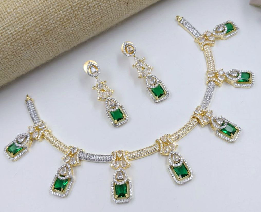 Indian Bollywood Style CZ Choker Necklace Earrings Bridal Jewelry Set available in 10 different colors.