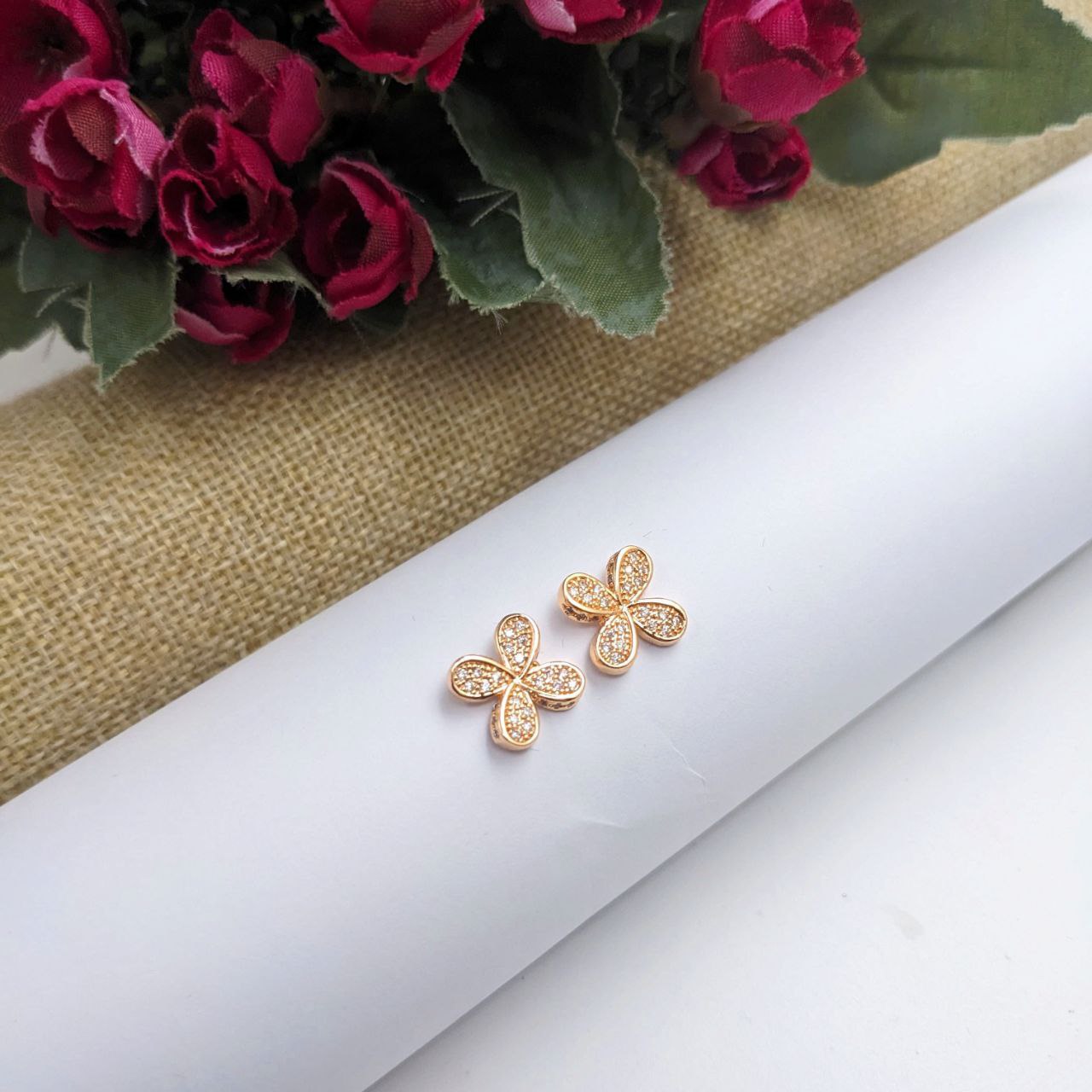 Gold Plated High Quality CZ Flower Earrings Studs