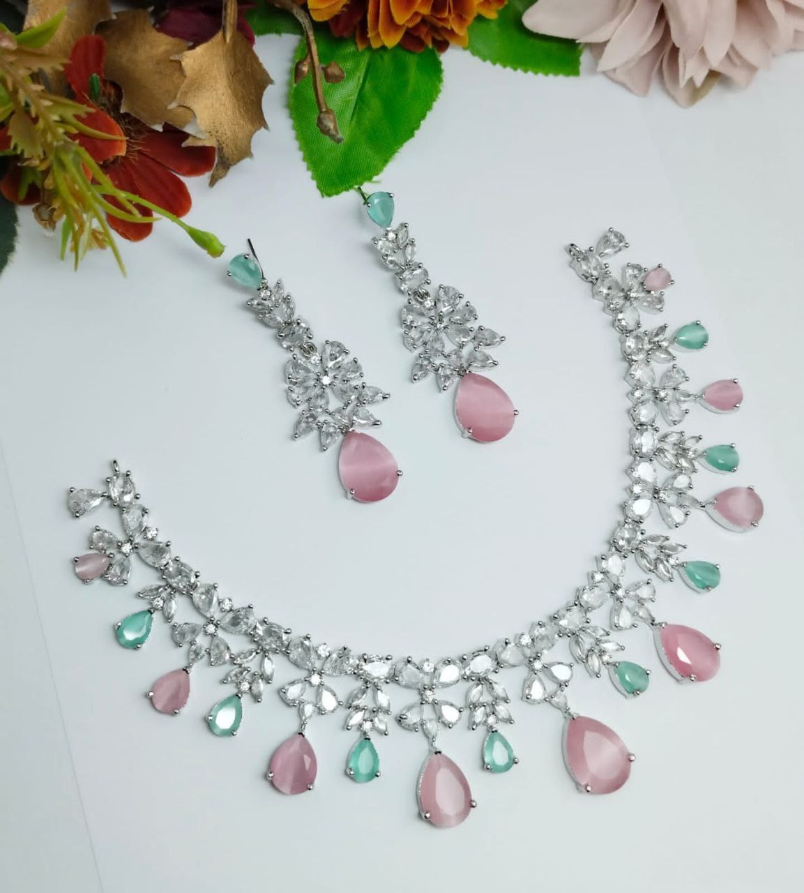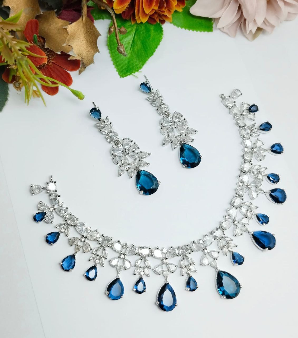 Indian Bollywood Style CZ Choker Necklace Earrings Bridal Jewelry Set available in 8 different colors.