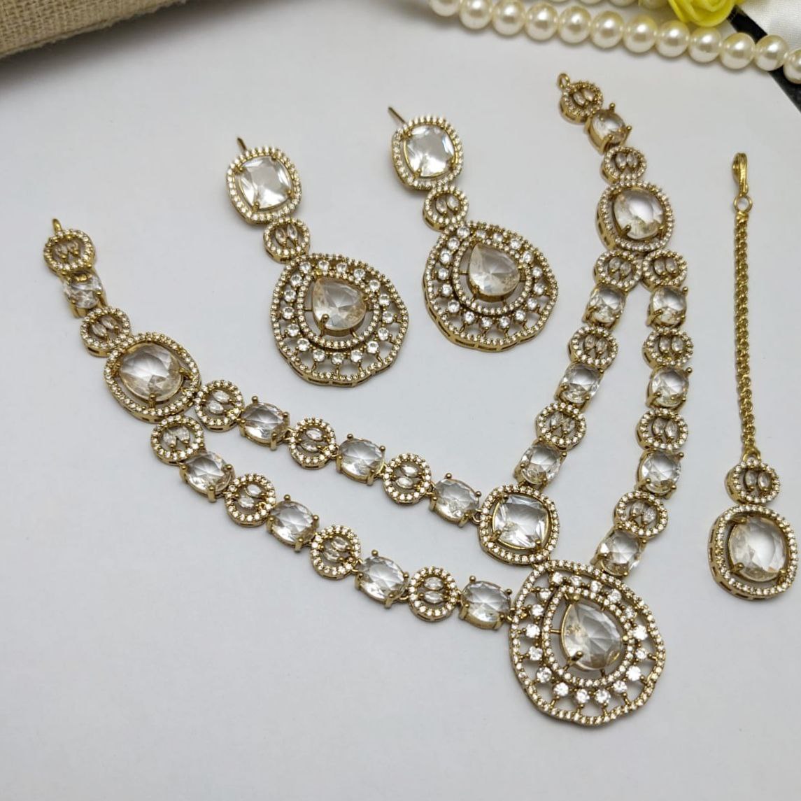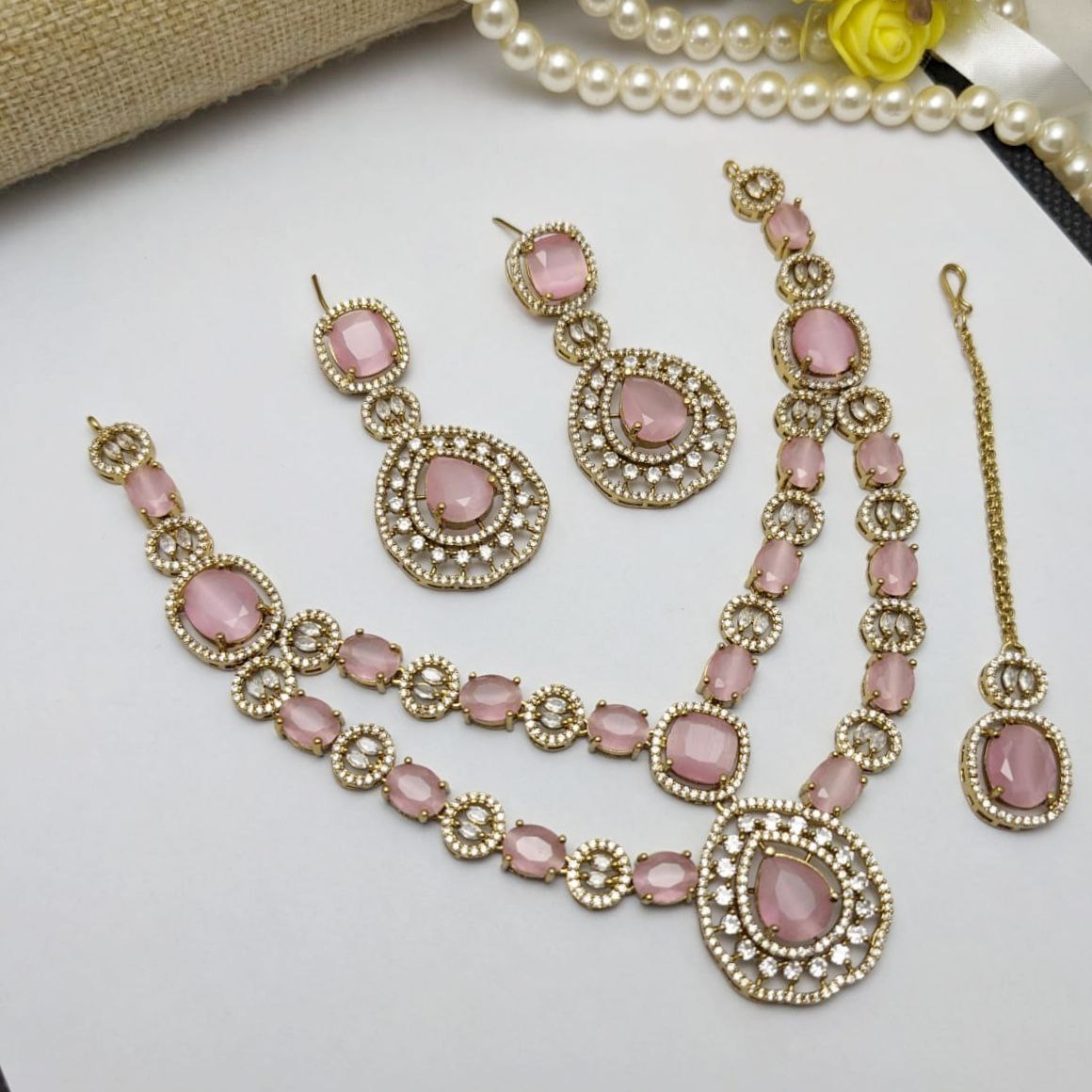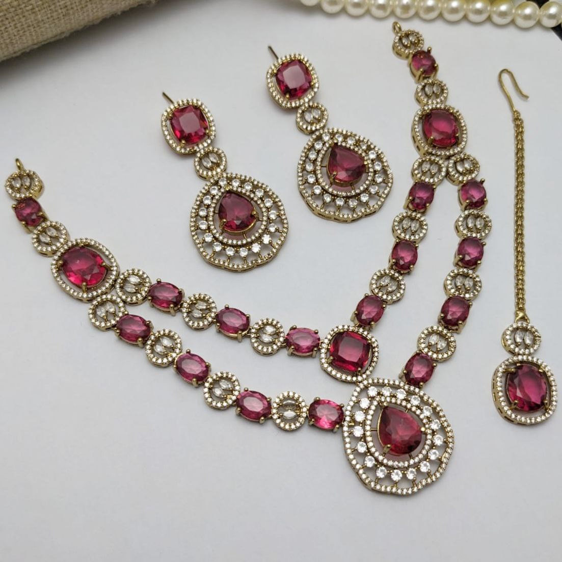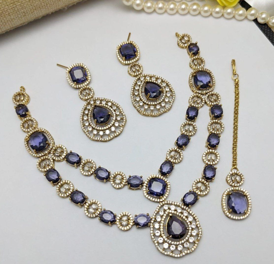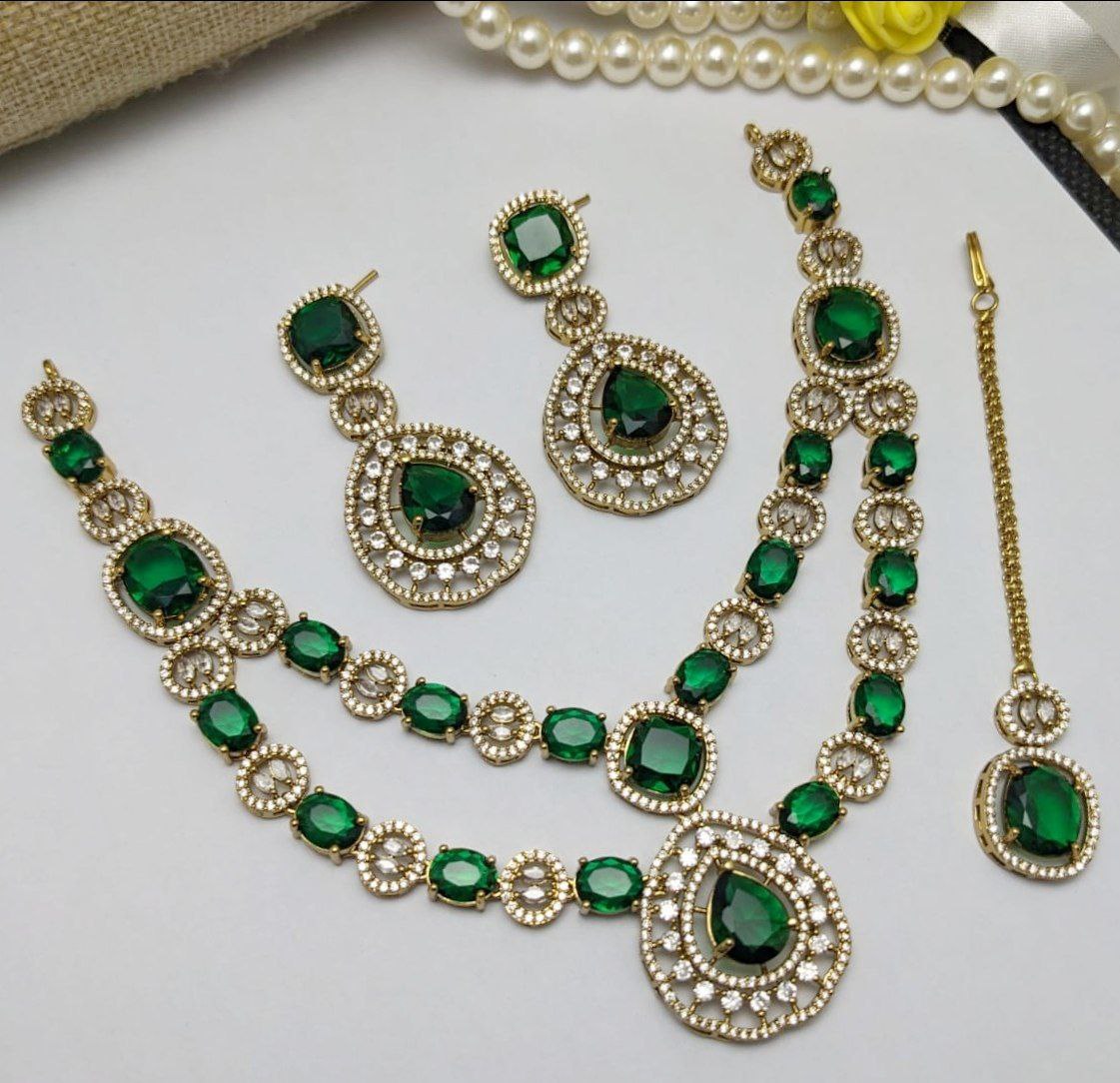 Indian Bollywood Style CZ Choker Necklace Earrings Bridal Jewelry Set available in 5 different colors.