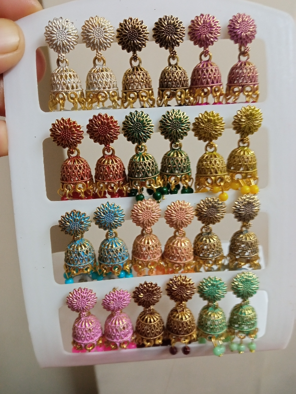 Add a burst of vibrant elegance to your accessory collection with this stunning 18-pair combo of traditional jhumka earrings. Each pair features intricate floral tops and dome-shaped jhumkas adorned with colorful beads, offering a perfect mix of festive and ethnic charm. Whether you’re dressing up for weddings, festivals, or daily wear, this multicolor set gives you endless styling options to match every outfit.