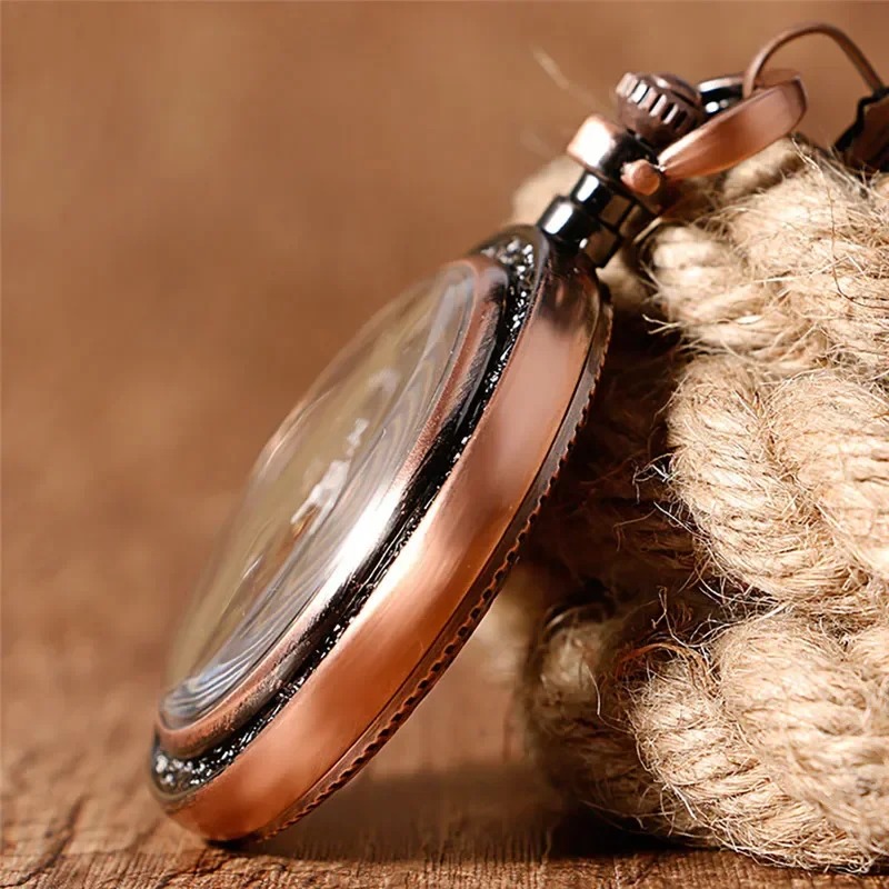 Elevate your style with this elegant vintage mechanical pocket watch, featuring a beautifully engraved floral case and a clear skeleton dial that reveals the intricate inner gears. A timeless piece perfect for collectors and steampunk enthusiasts.